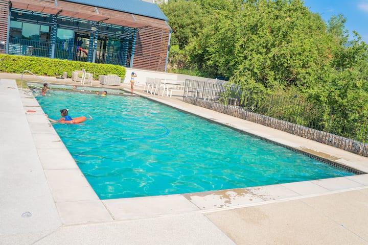นี่เป็นหนึ่งในที่พักไม่กี่แห่งของย่านนี้ที่มีสระว่ายน้ำ