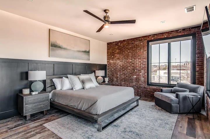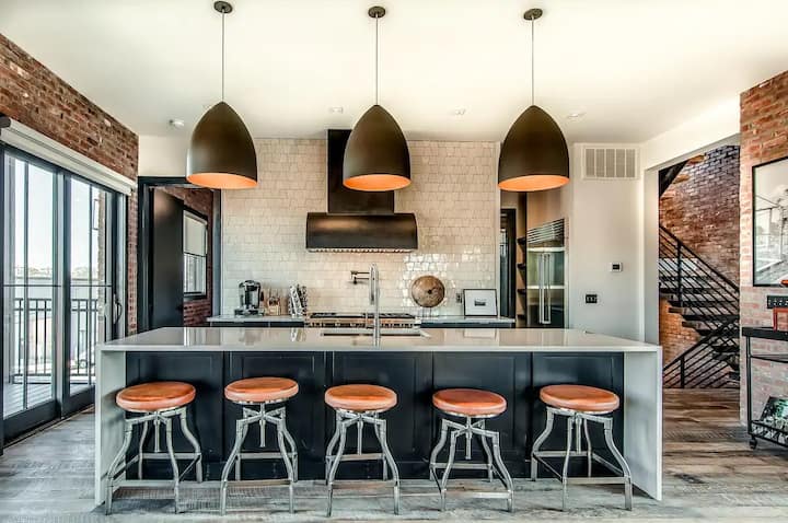 พักในใจกลางเวดจ์วูด-ฮุสตัน (WeHo) — หนึ่งในย่านที่ทันสมัยที่สุดของแนชวิลล์! ทาวน์โฮมสไตล์อินดัสเตรียลชิค 4 ห้องนอน/4 ห้องน้ำแห่งนี้มีการตกแต่งระดับไฮเอนด์ การออกแบบที่ควรค่าแก่การถ่ายรูปลงนิตยสาร และดาดฟ้าส่วนตัวที่มีวิวเส้นขอบฟ้าของตัวเมืองที่น่าทึ่ง อยู่ห่างจากบรอดเวย์ เดอะกัลช์ และสถานที่ท่องเที่ยวที่เป็นเอกลักษณ์ของเมืองดนตรีทั้งหมดเพียงไม่กี่นาที