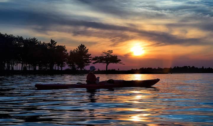 ตื่นขึ้นในตอนเช้าพร้อมกับเสียงนกน้ำบนผิวน้ำที่สงบนิ่งและแสงแรกของพระอาทิตย์ขึ้นที่ทะเลสาบฮิกกินส์ จิบกาแฟสดบนดาดฟ้าขณะที่พระอาทิตย์ขึ้นเหนือเซาท์เบย์ ทะเลสาบฮิกกินส์มีพระอาทิตย์ขึ้นที่งดงามจากท่าเรือส่วนตัว ชายฝั่ง ดาดฟ้า หรือพื้นที่รับประทานอาหารที่หันหน้าไปทางทิศตะวันออก ชายฝั่งที่เป็นมิตรเหมาะสำหรับเด็ก ๆ; ที่เล่นทรายริมน้ำพร้อมของเล่น ท่าเรือส่วนตัว + ทุ่นจอดเรือ (ตามฤดูกาล) สำหรับเรือของคุณ ยามเย็นหมายถึงการทำสโมร์ร์ริมกองไฟริมน้ำ แสงเหนือ และท้องฟ้าที่เต็มไปด้วยดวงดาวจากท่าเรือ!