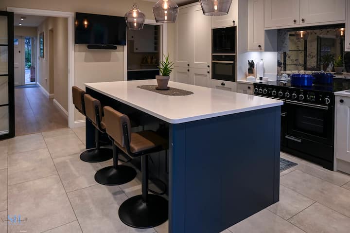 ที่พักผ่อนสำหรับครอบครัวกว้างขวางพร้อมสวน + พื้นที่ทำงาน