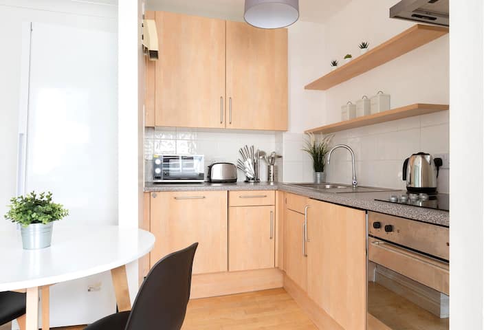 ห้องครัวที่มีอุปกรณ์ครบครันมีการออกแบบที่ทันสมัยและมาพร้อมกับเตาอบไฟฟ้าเต็มรูปแบบและอุปกรณ์ทำอาหารทั้งหมดที่คุณต้องการระหว่างการเข้าพัก ไม่ว่าคุณจะเป็นผู้ที่ชื่นชอบการทำอาหารหรือต้องการเตรียมอาหารอย่างรวดเร็วห้องครัวนี้ได้รับการออกแบบมาเพื่อให้ประสบการณ์การทำอาหารของคุณราบรื่นและสนุกสนาน