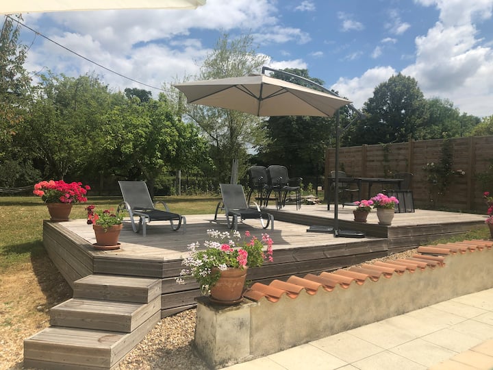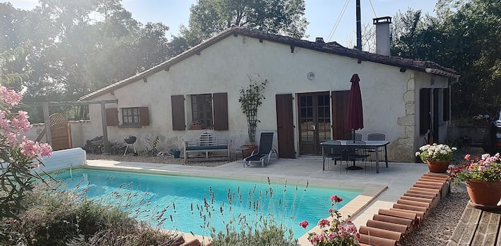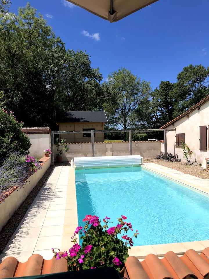 บ้านหลังนี้ตั้งอยู่ในชนบทของฝรั่งเศส รถเป็นสิ่งสำคัญ สระว่ายน้ำมีความร้อนและบ้านมีเครื่องทำความร้อนและไฟเปิด คุณสามารถนำสุนัขของคุณมาเองได้เนื่องจากรั้วมีความปลอดภัยและคุณควรทราบว่าเพื่อนบ้านมีสุนัข