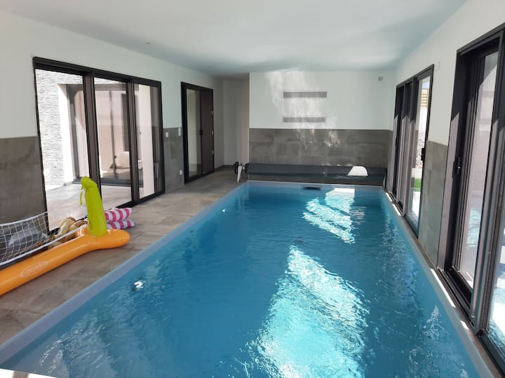 วิลล่า Ty Varcq สำหรับ 10 คน มีสระว่ายน้ำอุ่นและวิวทะเล