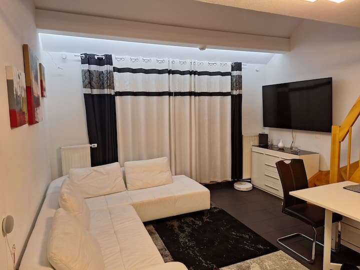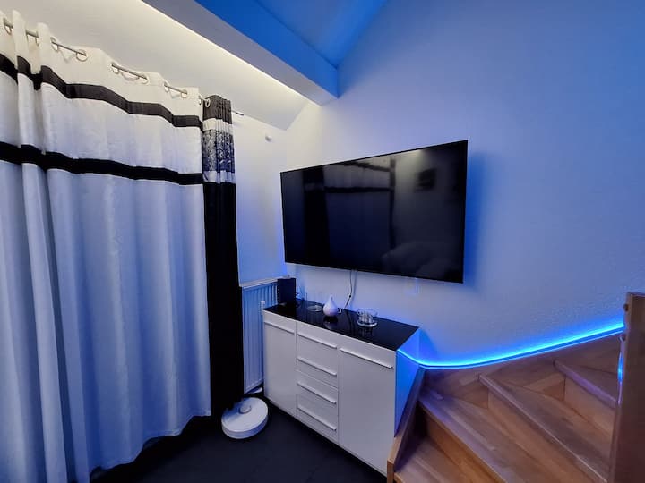 อพาร์ทเมนท์พร้อมเครื่องปรับอากาศ สมาร์ทโฮม และทีวีขนาด 65 นิ้ว