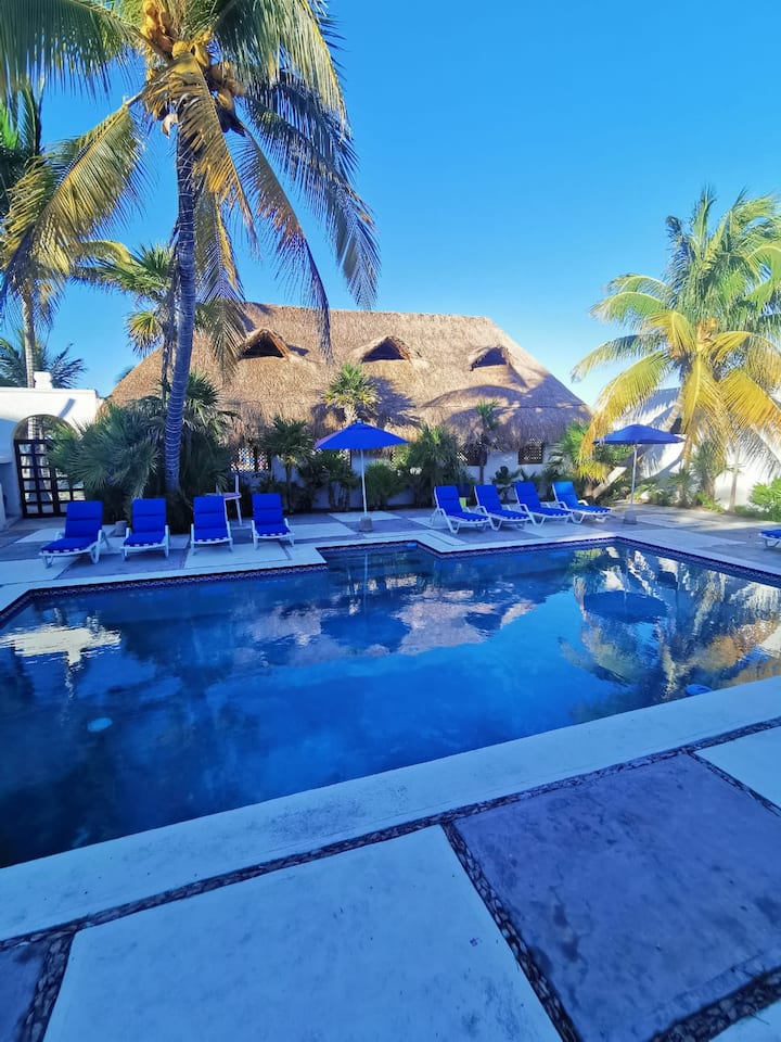 นี่เป็นหนึ่งในที่พักไม่กี่แห่งของย่านนี้ที่มีสระว่ายน้ำ