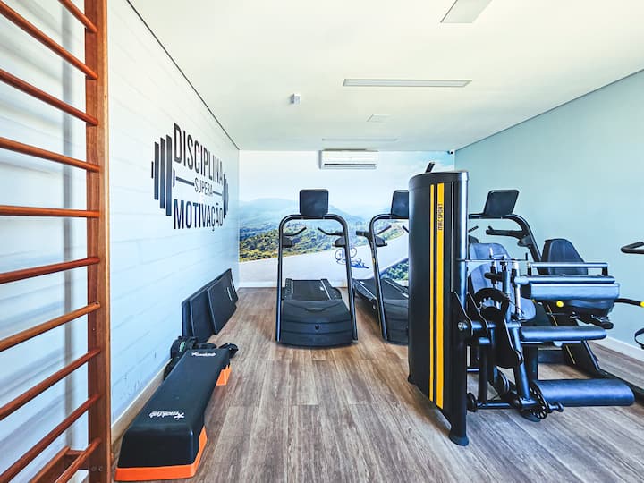 มีเครื่องวิ่งสายพานและอุปกรณ์ยกน้ำหนักสำหรับออกกำลัง