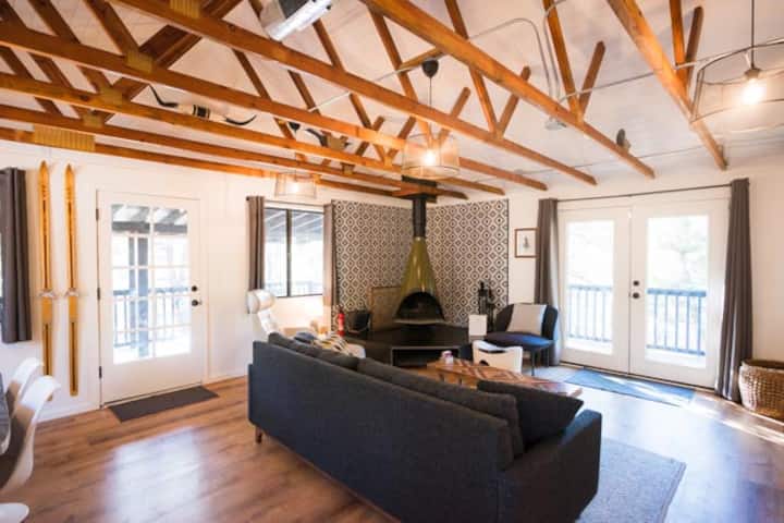 เคบินสไตล์โมเดิร์นช่วงกลางศตวรรษในไพน์พร้อมเตาผิง
