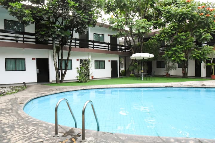 นี่เป็นหนึ่งในที่พักไม่กี่แห่งของย่านนี้ที่มีสระว่ายน้ำ