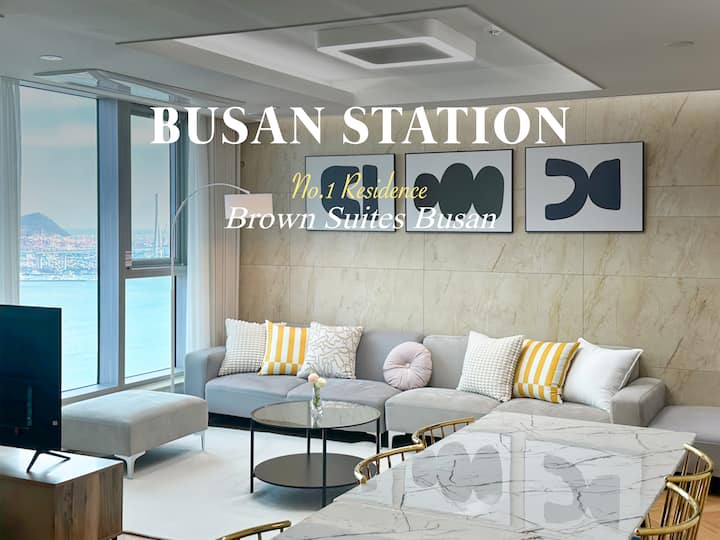 【สถานีรถไฟปูซาน 5 นาที】 #วิวทะเล#เชื่อมต่อ#ชั้นสูง|123 ตร.ม.|สูงสุด 8 คน|เตียง 4 เตียง|ทำอาหาร・ซักผ้า|เก็บสัมภาระ・ที่จอดรถฟรี