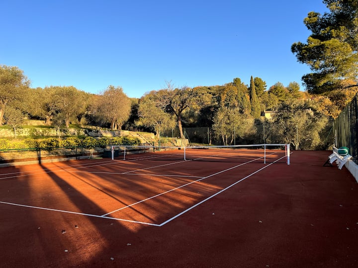 ฟาร์มเฮาส์ที่ปรับปรุงใหม่พร้อมสนามเทนนิสและสวน