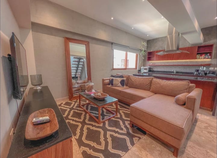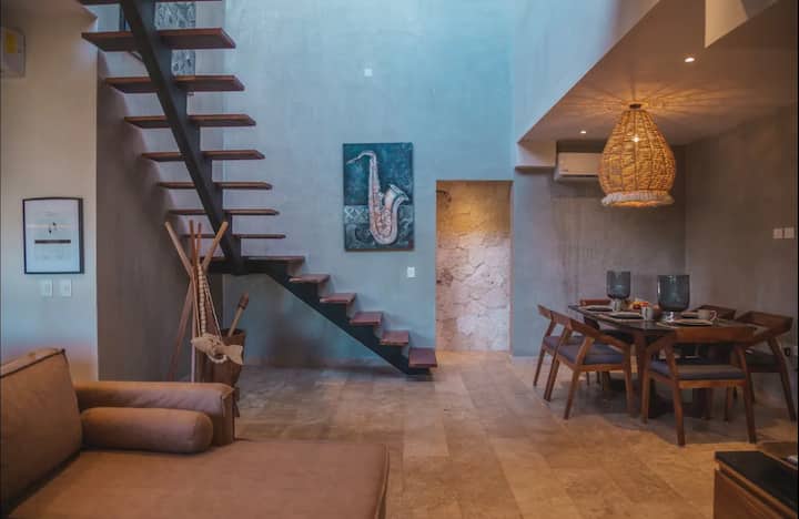 เพลิดเพลินกับ Tulum จากเพนท์เฮาส์ส่วนตัวสไตล์โมเดิร์นที่อบอุ่นพร้อมดาดฟ้าส่วนตัวที่น่าตื่นตาตื่นใจพร้อมสระว่ายน้ำส่วนตัว! 2 ห้องนอนที่กว้างขวางมีเตียงขนาดคิงไซส์ 1 เตียงและเตียงควีนไซส์ 1 เตียงพร้อมห้องน้ำเต็มรูปแบบ 2.5 ห้องการพักผ่อนส่วนตัวนี้เป็นส่วนเติมเต็มที่ยอดเยี่ยมสำหรับการเดินทางไกลหลายไมล์ของคุณ นอกจากนี้ยังมีห้องครัวพื้นที่รับประทานอาหารและห้องนั่งเล่นเพื่อประสบการณ์ ‘เหมือนอยู่บ้าน’ เต็มรูปแบบ
