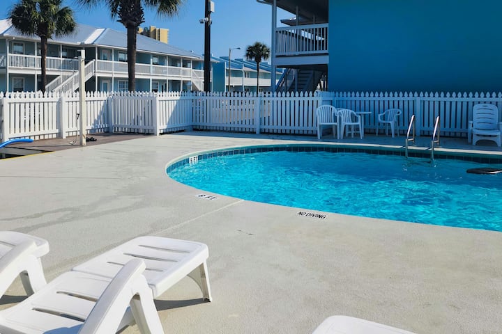 1 ห้องนอนใกล้ชายหาดพร้อมสระว่ายน้ำชัฟเฟิลบอร์ดและลาน 2 ห้อง