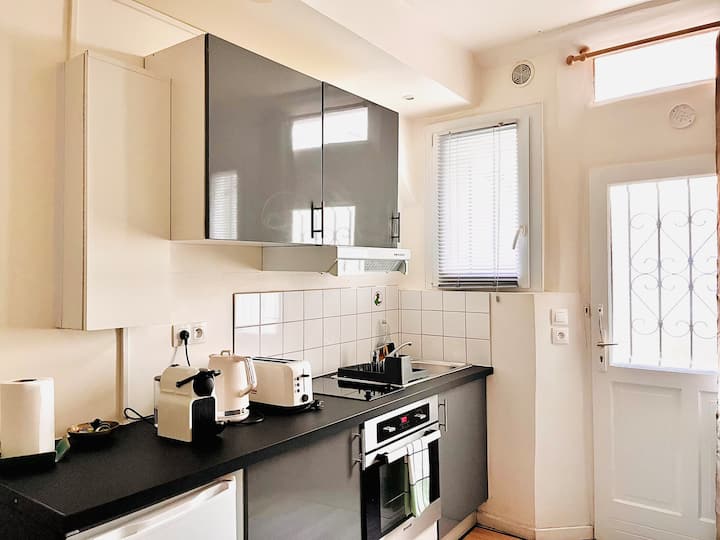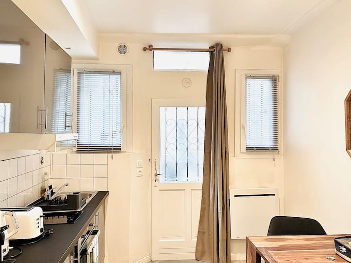 มาเพลิดเพลินกับเมืองแห่งแสงไฟทั้งหมดในสตูดิโอที่น่ารักและตกแต่งอย่างสวยงามที่ชั้นล่างของลานปูลาดและเงียบสงบห่างจากคลองเซนต์มาร์ตินเพียงไม่กี่ก้าวและร้านอาหารทันสมัยร้านค้าพิเศษและทิวทัศน์ที่เงียบสงบ เตียงคู่ที่สะดวกสบายห้องอาบน้ำที่ยอดเยี่ยมพร้อมห้องสุขาห้องครัวที่มีอุปกรณ์ครบครันและโต๊ะรับประทานอาหารทีวีตู้เสื้อผ้าสิ่งจำเป็นทั้งหมดอยู่ที่นั่นเพื่อให้เป็นรังไหมที่คุณจะได้กลับไปอีกครั้งหลังจากสำรวจสิ่งมหัศจรรย์ของปารีสมาหลายวัน