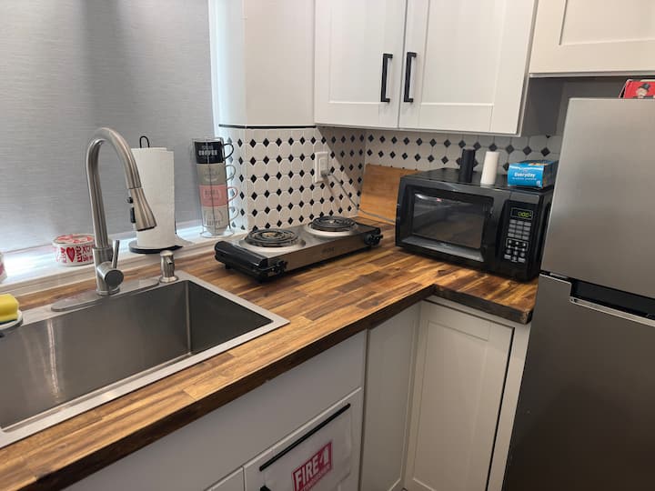 - ห้องครัวที่มีอุปกรณ์ครบครันสำหรับเตรียมอาหารเบาๆและของว่าง