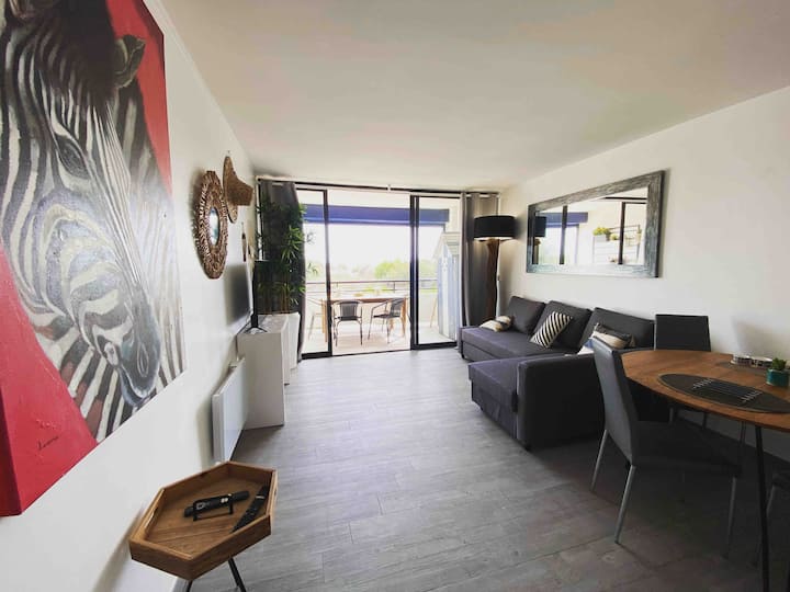 อพาร์ทเมนท์สวยงามขนาด 45 ตร.ม. พร้อมระเบียงที่มองเห็นวิวทะเลและอินเทอร์เน็ตไร้สาย