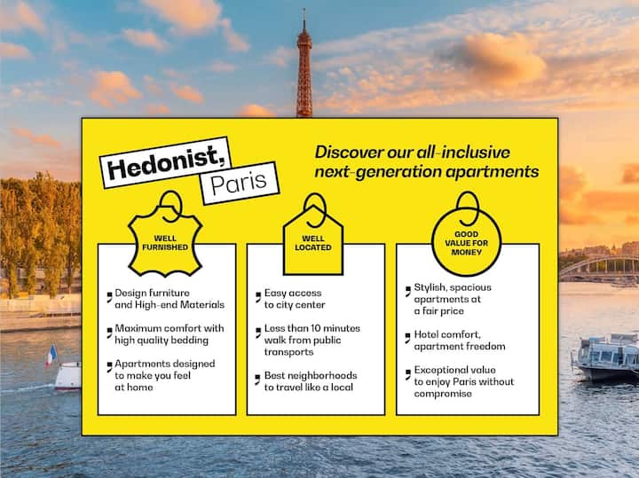 เรามีคอลเลกชันอพาร์ทเมนท์ที่หรูหราและตั้งอยู่ในทำเลที่สมบูรณ์แบบในปารีส ออกแบบมาเพื่อมอบประสบการณ์ที่เรียบง่าย สะดวกสบาย และเป็นของแท้