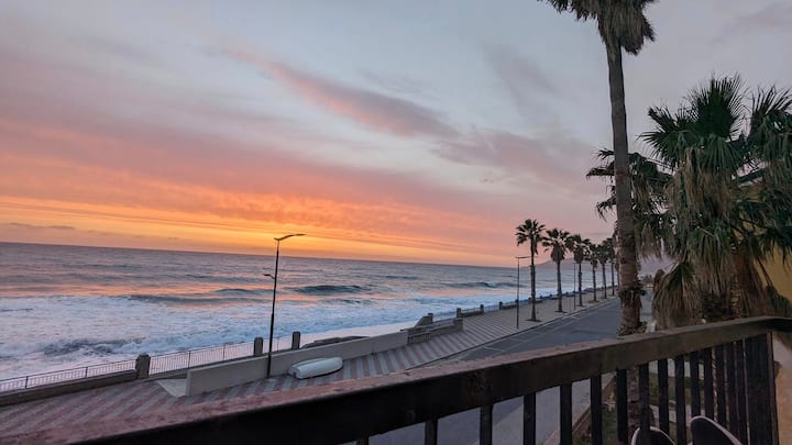 อพาร์ทเมนท์สีขาวที่มองเห็นวิวทะเล