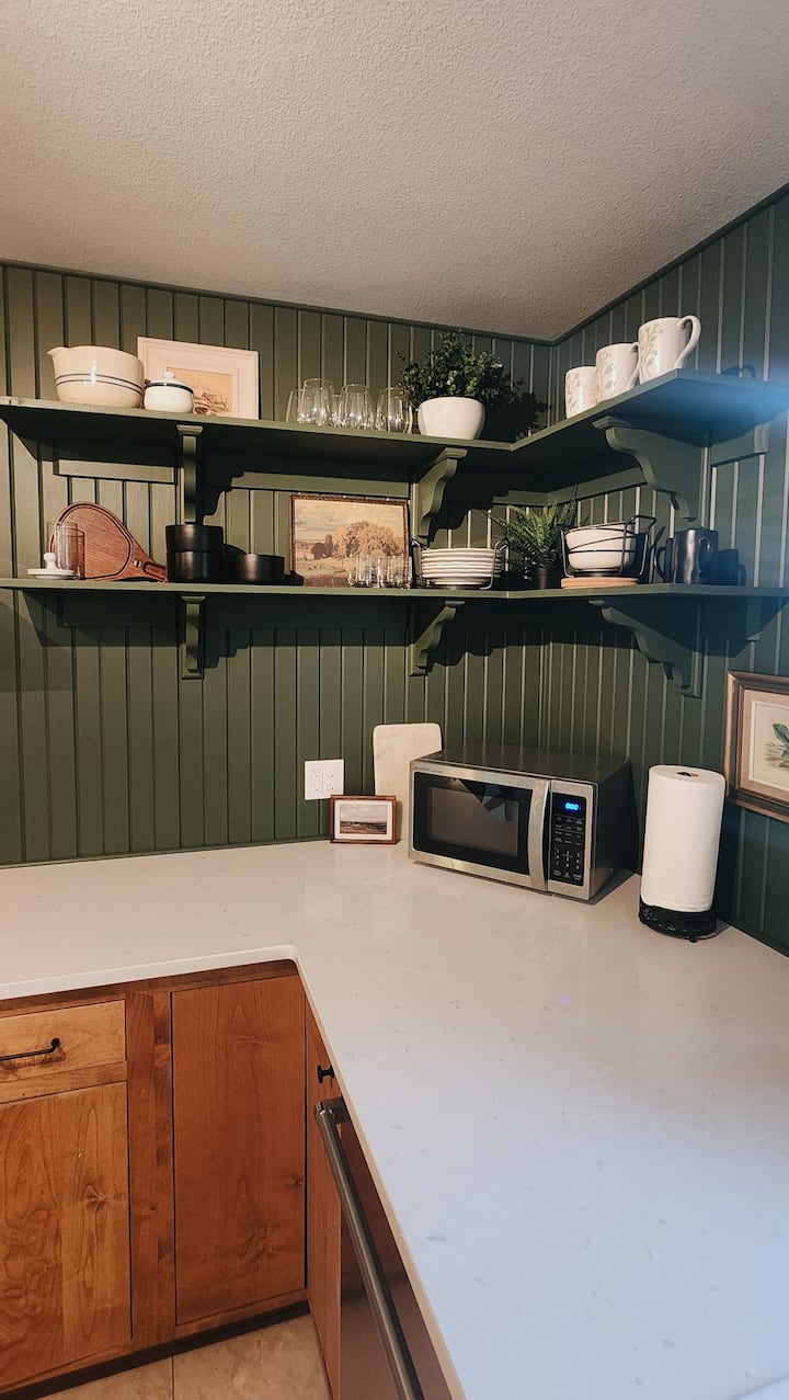 ที่พักนี้มี 2 ห้องนอนส่วนตัวห้องน้ำเต็มรูปแบบพร้อมฝักบัวอาบน้ำแบบวอล์คอิน ห้องครัวขนาดใหญ่ที่มีอุปกรณ์ครบครันและได้รับการปรับปรุงใหม่พร้อมเตาแก๊สเตาอบเครื่องล้างจานตู้เย็น/ตู้แช่แข็งขนาดใหญ่และพื้นที่เคาน์เตอร์มากมาย โต๊ะรับประทานอาหารรองรับได้ 6 ที่นั่งอย่างสะดวกสบายและเพิ่มพื้นที่ทำงานเป็นสองเท่าหากคุณนำงานมาด้วย ห้องนั่งเล่นและลานกลางแจ้งที่มีหลังคามีที่นั่งสำหรับผู้เข้าพักเพิ่มเติม ที่พักนี้นอนได้สบายๆ 4 คนแต่อนุญาตให้มีผู้เข้าพักเพิ่มเติมได้ตราบใดที่พวกเขาพอใจที่จะใช้โซฟาหรือที่นอนเป่าลมขนาดใหญ่ของเราซึ่งสามารถจัดไว้ในห้องนั่งเล่นได้