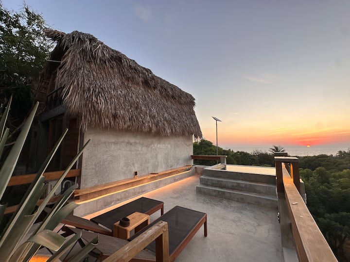 - บ้านพักตากอากาศที่มีที่นั่งกลางแจ้งใน Brisas de Zicatela