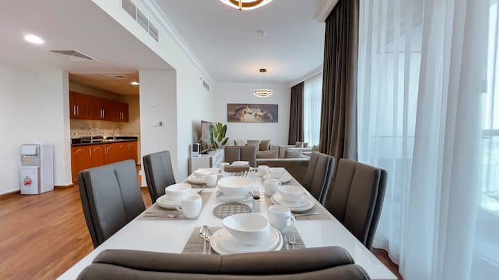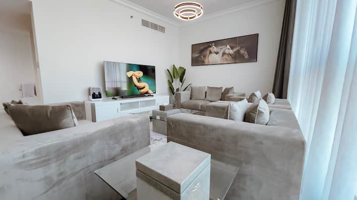 ห้องนอน 2 ห้องตกแต่งใหม่หรูหราพร้อมวิวอัจมาน/ดูไบ