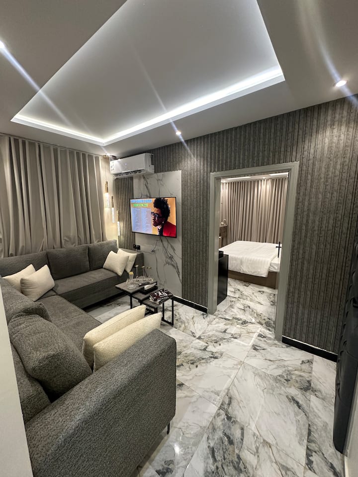 อพาร์ทเมนท์ทันสมัย ห้องนอนและห้องนั่งเล่นพร้อมระบบเข้าอาคารอัจฉริยะ
