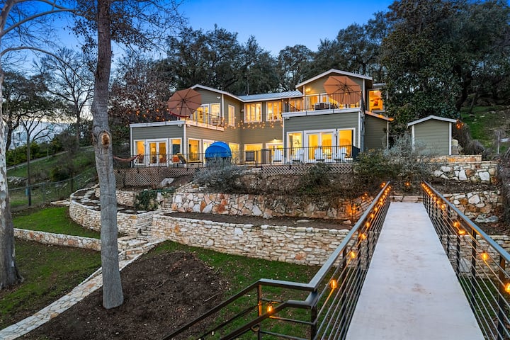 ยินดีต้อนรับสู่วิลล่าเบลล่าวิสตาสุดยอดของการใช้ชีวิตสุดหรูบนทะเลสาบออสติน! ที่พักที่สวยงามแห่งนี้ออกแบบมาสำหรับกลุ่มและครอบครัวที่กำลังมองหาสถานที่พักผ่อนที่น่าจดจำซึ่งมีการหลอมสร้างความทรงจำและการผจญภัยรอคุณอยู่ Villa Bella Vista รองรับผู้เข้าพัก 13 คนมอบประสบการณ์ริมทะเลสาบที่บริสุทธิ์ด้วยการเข้าถึงทะเลสาบที่กว้างขวางดาดฟ้าส่วนตัวสลิปเรือ 3 ลำ (รวมถึงท่าเรือแห้ง 2 แห่ง) และสระว่ายน้ำที่ล้อมรอบด้วยความงามของเท็กซัสที่ไม่มีใครเทียบได้ ที่พักแห่งนี้ผสมผสานความหรูหราเข้ากับความสะดวกสบายได้อย่างลงตัวเพื่อให้แน่ใจว่าการเข้าพักของคุณจะไม่มีอะไรพิเศษ