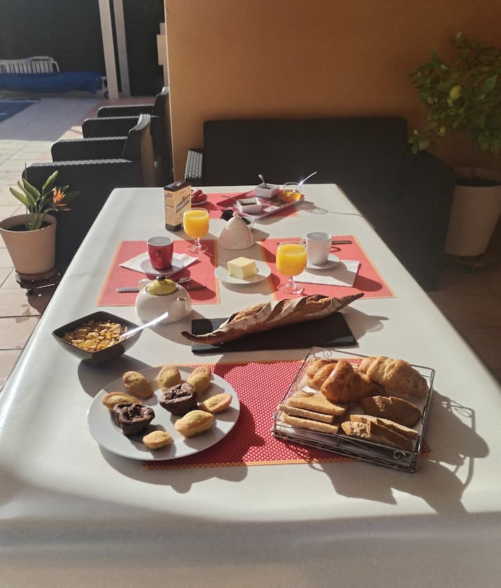 ห้องนอนส่วนตัว ใน เบดแอนด์เบรคฟาสท์ ใน Elne ฝรั่งเศส