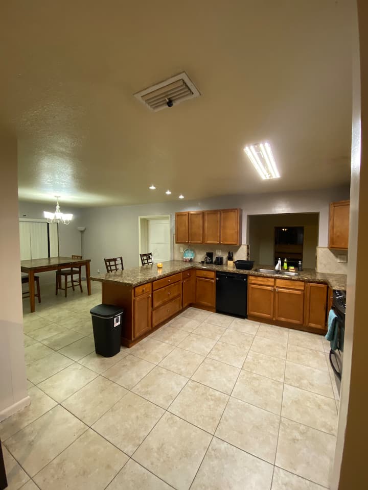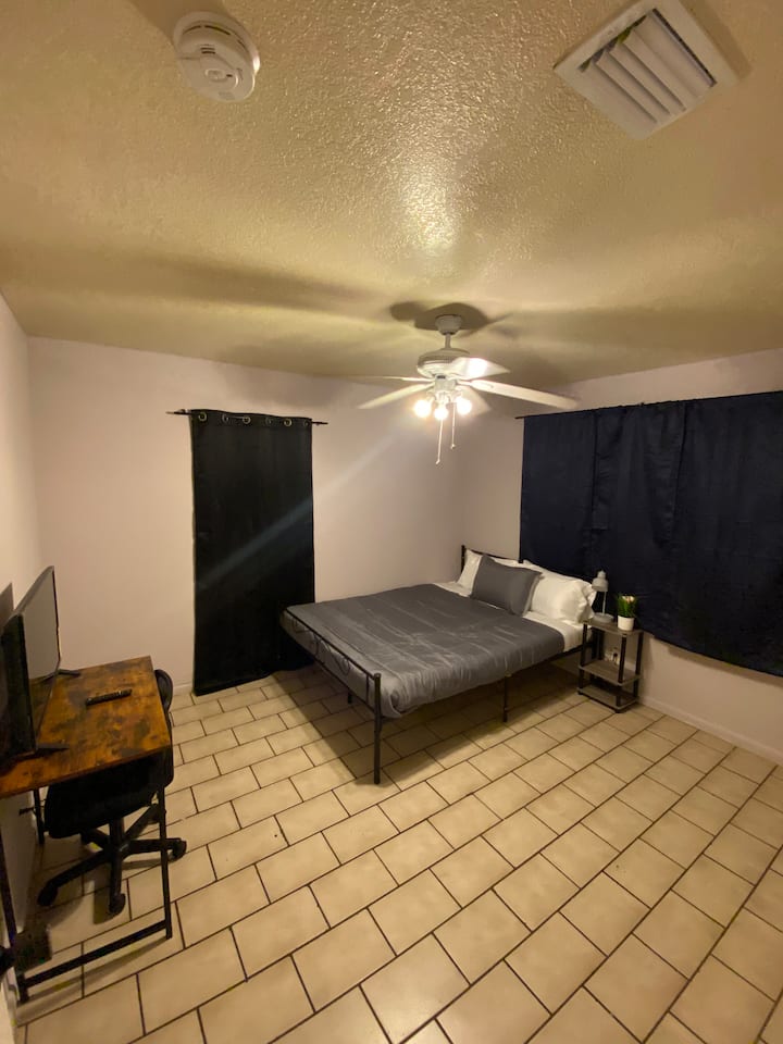 ยินดีต้อนรับสู่บ้านของฉัน “เขาวงกต ”! พื้นที่นั่งเล่นเปิดโล่งห้องครัวกว้างขวางและย่านที่เงียบสงบ! ห้องของคุณมีเตียงควีนไซส์ เครื่องปรับอากาศหน้าต่าง/เครื่องปรับอากาศส่วนกลาง โต๊ะทำงาน เก้าอี้ ทีวี พัดลมเพดาน ม่านบังแสง และตู้เสื้อผ้า มาสนุกกับที่พักที่น่ารักนี้กันเถอะ!