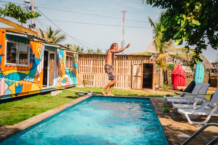 นี่เป็นหนึ่งในที่พักไม่กี่แห่งของย่านนี้ที่มีสระว่ายน้ำ