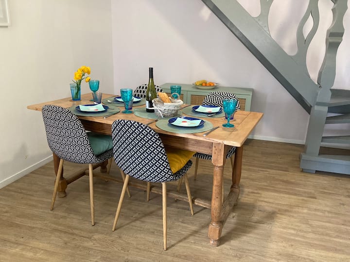 บ้านสองห้องนอนหลังนี้ตั้งอยู่ใน Quartier des Dunes ใช้เวลาเดินไม่ถึงสามนาทีจากชายหาดห่างจากท่าเรือ 5 นาทีและห่างจาก Rue du Marche ประมาณ 10 นาทีสามารถรองรับได้ 5 คนอย่างสะดวกสบาย มีห้องครัวที่มีอุปกรณ์ครบครันเครื่องทำความร้อนส่วนกลางห้องนั่งเล่น/ร้านอาหารที่กว้างขวางพร้อมทีวี/ดีวีดี Wi-Fi และระเบียงที่มองเห็นลานเล็กๆด้านหน้า มีห้องอาบน้ำฝักบัวชั้นล่างใหม่/ห้องสุขาและห้องนอนกว้างขวางสองห้องชั้นบน