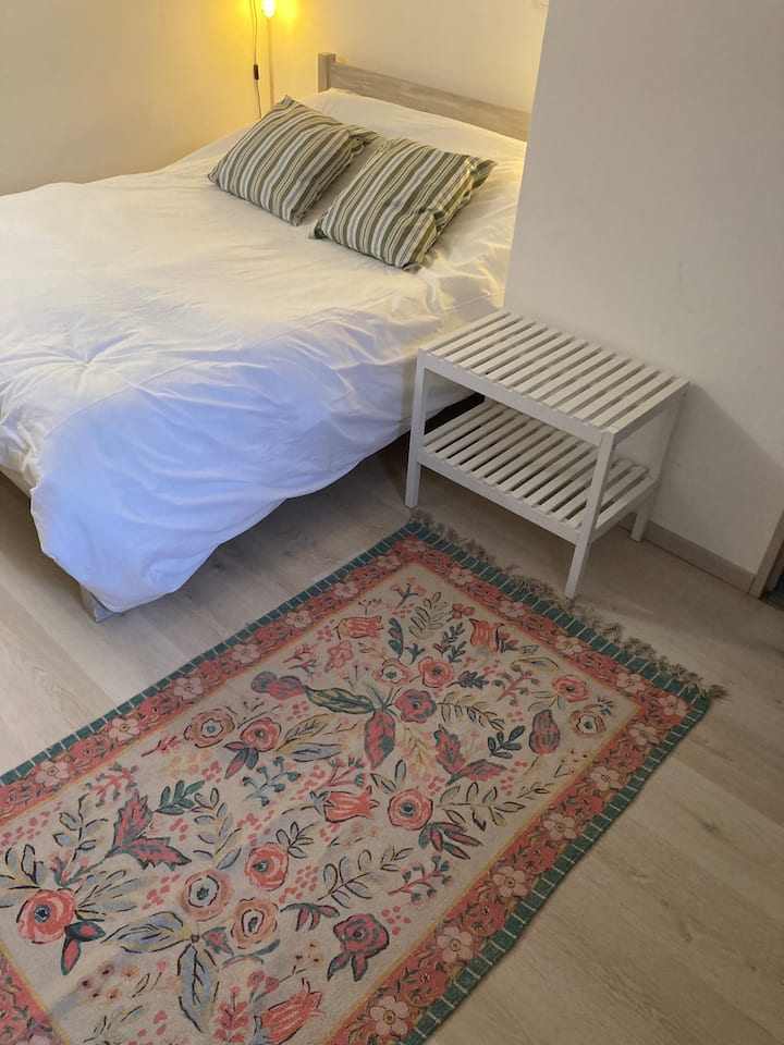ห้องนอนด้านหน้ามีเตียงคู่ (140 ซม.) ตู้ลิ้นชัก (สาม) ชั้นวางข้างเตียงและโคมไฟอ่านหนังสือติดผนัง ห้องนี้มีห้องแต่งตัวที่มีหน้าต่าง ราวแขวนเสื้อ (100 ซม.) ชั้นวางของ โต๊ะแต่งตัว (มีไดร์เป่าผมให้) เตารีดขนาดเล็ก กระจก และเก้าอี้