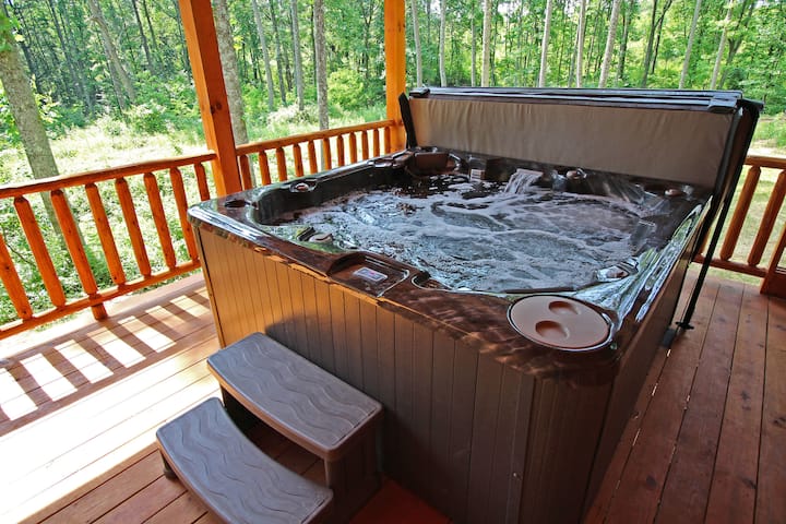 เคบินไม้สำหรับ 10 คนพร้อมอ่างน้ำร้อนในฮ็อกกิ้งฮิลส์