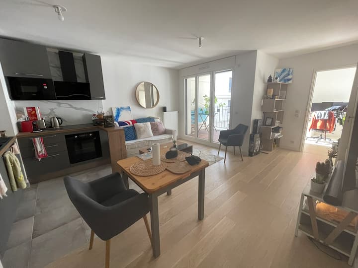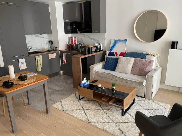 อพาร์ทเมนท์ใหม่ใกล้ปารีสพร้อมระเบียง อยู่ห่างจากสถานีรถไฟใต้ดิน 4 นาที