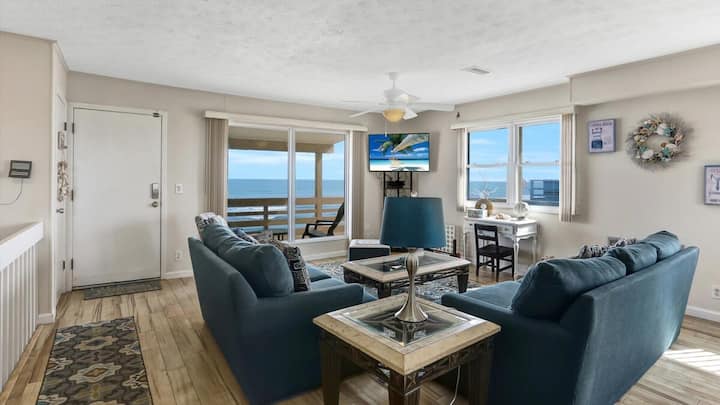 แปลนพื้นห้องนั่งเล่นแบบเปิดโล่ง พื้นที่รับประทานอาหาร และห้องครัวให้พื้นที่ที่ยอดเยี่ยมสำหรับครอบครัวในการรวมตัวกัน ทำอาหาร และรับประทานอาหาร ทั้งหมดนี้มีวิวมหาสมุทรแอตแลนติก โต๊ะรับประทานอาหารนั่งได้ 8 ที่และมีเก้าอี้บาร์ 4 ตัวที่บาร์ครัว มีพื้นที่กว้างขวางในห้องนั่งเล่นสำหรับพูดคุยหรือดูภาพยนตร์ที่คุณชื่นชอบ ห้องครัวที่เพิ่งปรับปรุงใหม่มีอุปกรณ์ครบครันเพื่อให้แม้แต่เชฟที่จู้จี้ยังพอใจ เคาน์เตอร์ท็อปหินแกรนิตและกระเบื้องสวยงามช่วยเพิ่มความอบอุ่นให้กับที่พัก อย่าลืมเตรียมอาหารและเครื่องดื่มไว้สำหรับวันหยุดของคุณ มีตู้เย็นสำรองในโรงจอดรถสำหรับของชำเพิ่มเติมของคุณ