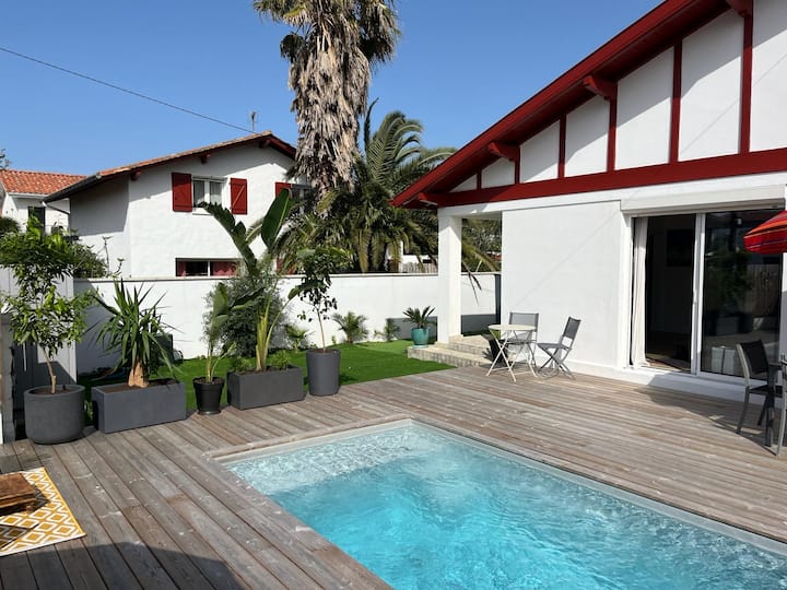 บ้านสไตล์บาสก์ที่มีสิ่งอำนวยความสะดวกครบครัน พร้อมสระว่ายน้ำ!