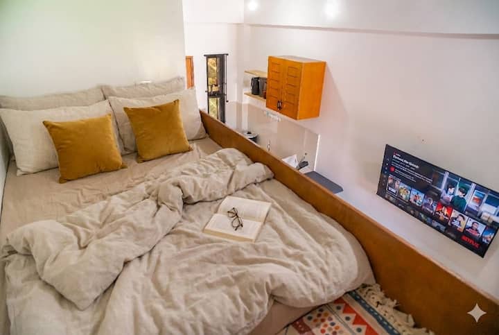 ภายในเดอะไฮฟ์ คุณจะเพลิดเพลินกับพื้นที่ที่ทันสมัยและสะดวกสบายเหมาะสำหรับการรองรับ 4 คนพร้อมสิ่งอำนวยความสะดวกที่จำเป็นทั้งหมด เพลิดเพลินกับ Wi-Fi ความเร็วสูงฟรี 200Mbps, Google TV ขนาด 43" ที่มี Netflix และ Amazon Prime, เครื่องปรับอากาศ, ห้องครัวที่มีอุปกรณ์ครบครันและผ้าเช็ดตัวและผ้าปูที่นอนสดใหม่พร้อมเตียง 2 เตียง: เตียงโซฟาควีนไซส์ 1 เตียง, เตียงลอฟท์ขนาดดับเบิล 1 เตียง สามารถจัดเตียงได้สูงสุด 4 คน