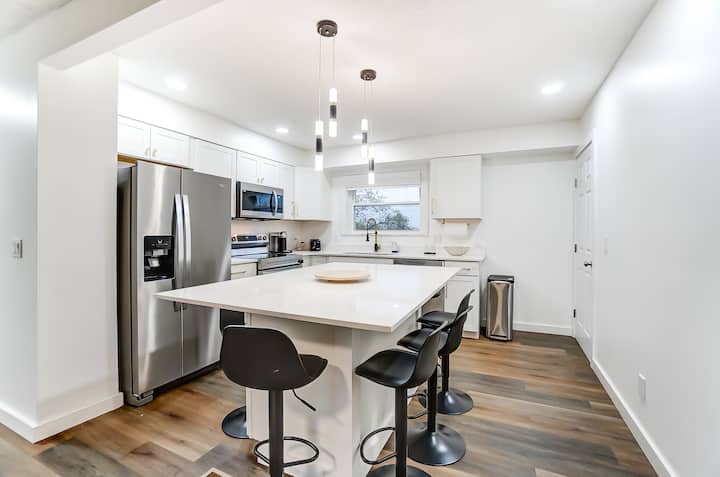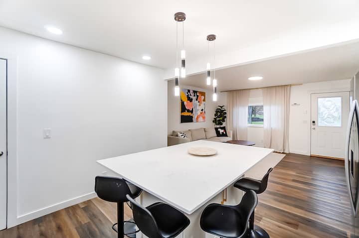 บ้าน 4 ห้องนอนที่อบอุ่นทันสมัย Wi-Fi ที่จอดรถ ห้องครัวเต็มรูปแบบ