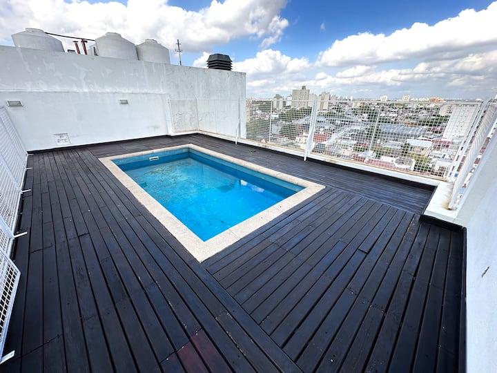 นี่เป็นหนึ่งในที่พักไม่กี่แห่งของย่านนี้ที่มีสระว่ายน้ำ