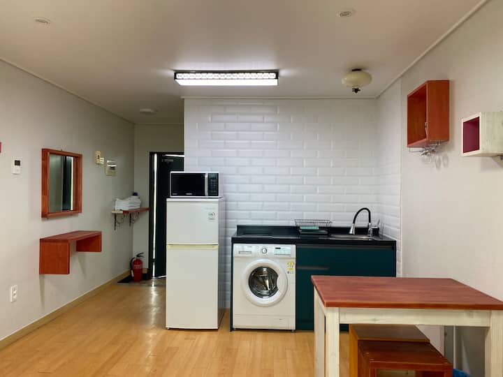 เพื่อป้องกันความชื้นของเกาะเชจูมีบันไดประมาณ 5 ขั้นที่ทางเข้าหลักไปยังชั้นแรกและสาขาที่ขึ้นไปยังแต่ละห้อง การใช้วีลแชร์ดูไม่สะดวกและหากคุณเป็นผู้เข้าพักที่ใช้ขาไม่ราบรื่นโปรดใช้ชั้นแรก และชั้นแรกและชั้นที่สองจะถูกคั่นด้วยบันไดและไม่มีลิฟต์แยกต่างหากในอาคาร โปรดอย่าทำผิดพลาดใดๆ