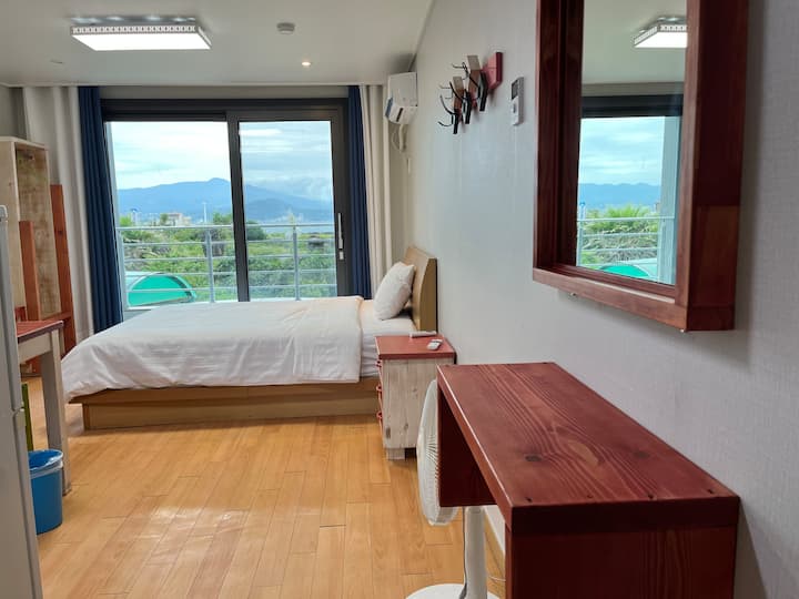 ที่พักแห่งนี้ตั้งอยู่ด้านหน้าชายทะเลบนถนนเลียบชายฝั่ง Sagye ซึ่งเป็นแบบพาโนรามาจาก Hallasan ไปยัง Sanbangsan Mountain และ Songaksan พระอาทิตย์ขึ้นสวยงามดังนั้นคุณจึงสามารถเพลิดเพลินกับวิวทะเลที่น่าตื่นตาตื่นใจที่ทีมถ่ายภาพกล้องมาหาคุณตลอดทั้งปี