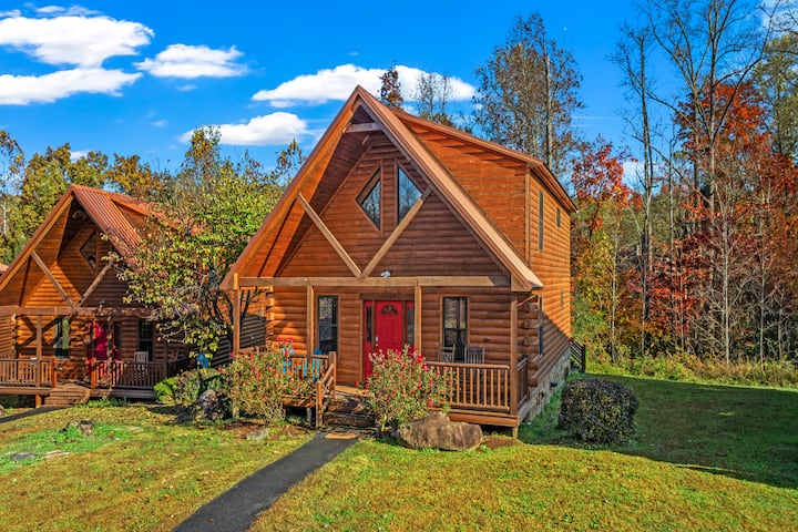 เคบิน 3 ห้องนอนที่มีเสน่ห์พร้อมอ่างน้ำร้อน! อาเขต + สระว่ายน้ำ!