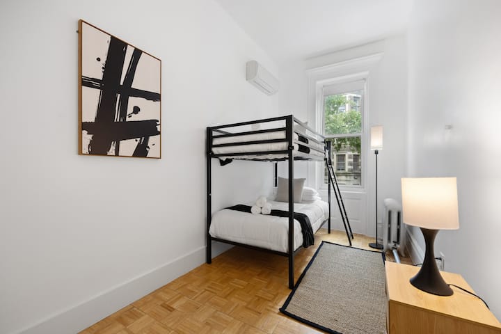 ยินดีต้อนรับสู่ "Vintage Luxe" แลนด์มาร์คในปี 1894 โดย Frederick Dinkelberg ซึ่งได้รับการบูรณะอย่างมีศิลปะให้เป็นประสบการณ์บูทีคสุดหรู 2 ห้องนอนนี้ผสมผสานการตกแต่งที่มีเสน่ห์แบบโลกเก่าเข้ากับความสะดวกสบายสมัยใหม่มีเตาผิงแบบเน้นเสียงหน้าต่างอ่าวห้องครัวเต็มรูปแบบ Wi-Fi ความเร็วสูงและแม้แต่เวิร์คสเตชั่น ลานบ้านส่วนตัวที่ไม่เหมือนใครในนิวยอร์กซิตีเหมาะสำหรับการพักผ่อน ด้วยรถไฟใต้ดินที่อยู่ห่างออกไปเพียง 1 นาทีจึงเป็นตัวเลือกที่ดีสำหรับครอบครัวกลุ่มหรือนักเดินทางที่กำลังมองหาที่พักใจกลางเมืองนิวยอร์ก