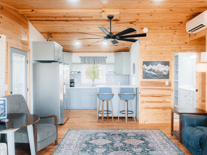 เคบินมีห้องครัวที่มีอุปกรณ์ครบครัน Wi-Fi ผ้าปูที่นอนใหม่สมาร์ททีวี 4 เครื่องและบรรยากาศที่ทั้งสะอาดและอบอุ่นอย่างไม่น่าเชื่อ อย่าพลาดสถานที่พักผ่อนที่ไม่มีใครเทียบได้แห่งนี้