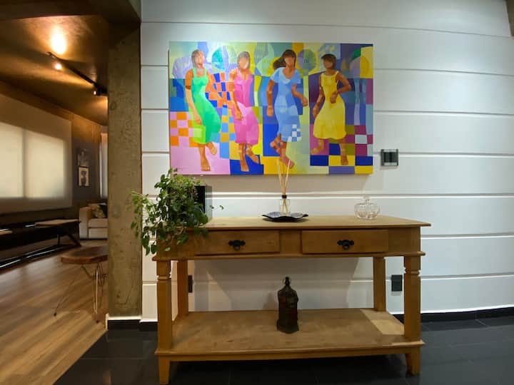 สตูดิโอที่กว้างขวางและมีสไตล์ใน Cambuí 75 ตร.ม. พร้อมเครื่องปรับอากาศและ GAR