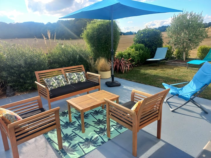 - บ้านพักตากอากาศที่มีที่นั่งกลางแจ้งใน ฝรั่งเศส