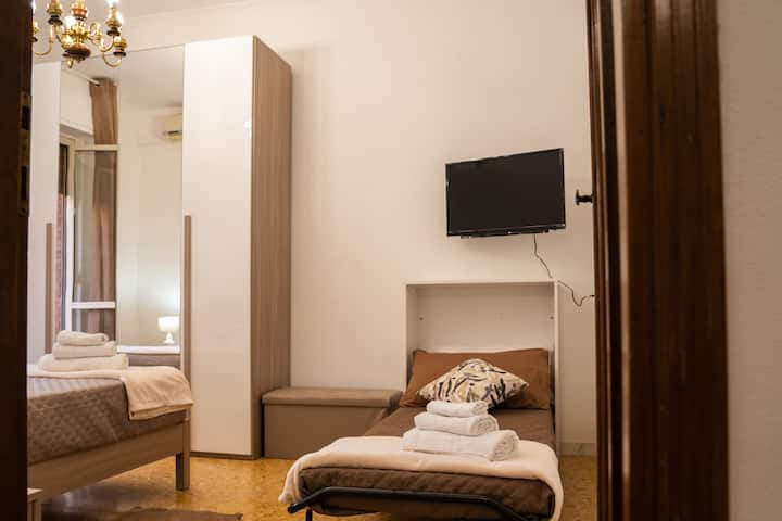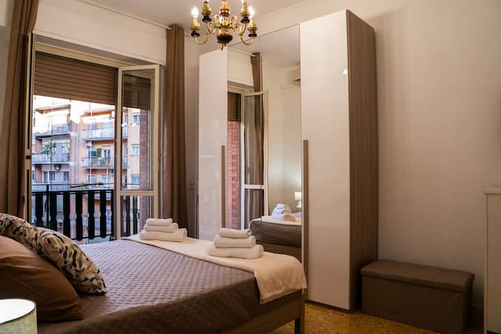 แฟลตแทรสเตเวเรสะดวกสบาย มีเครื่องปรับอากาศ รองรับผู้เข้าพักได้ 4+1 คน ใกล้สถานีรถไฟใต้ดินสาย B