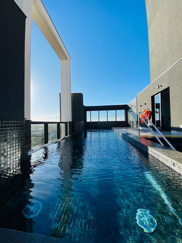 นี่เป็นหนึ่งในที่พักไม่กี่แห่งของย่านนี้ที่มีสระว่ายน้ำ