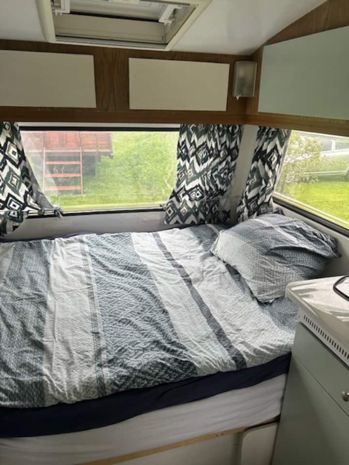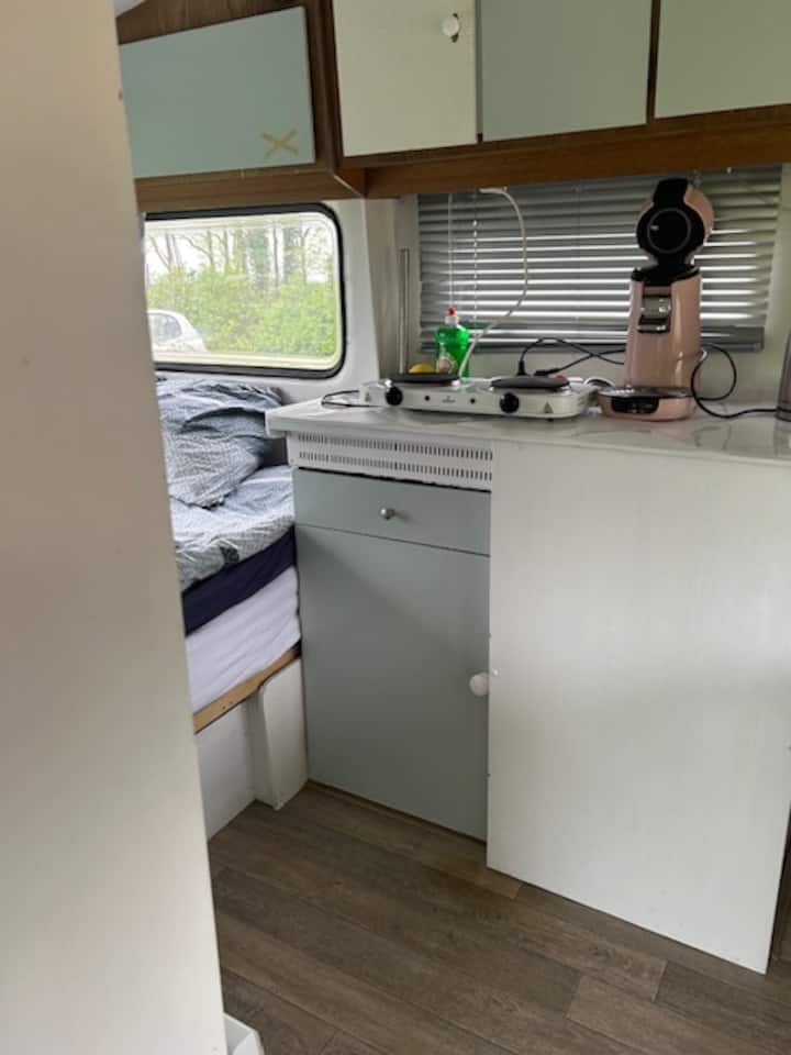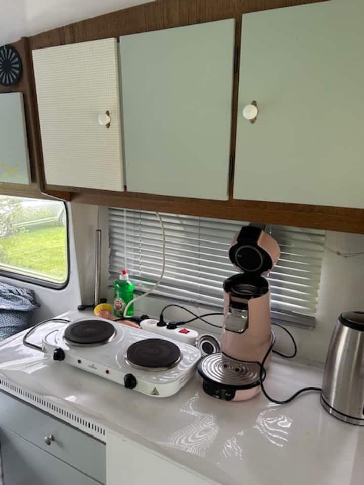 คาราวานย้อนยุคใช้งานได้จริงและสะดวกสบายมีทุกสิ่งที่คุณต้องการเพื่อการเข้าพักที่น่ารื่นรมย์ คุณจะพบสิ่งจำเป็นทั้งหมดสำหรับทำอาหารทานเองและชงกาแฟหรือชา เตียงมีฟูกนอนและท็อปเปอร์คุณภาพสูงและได้รับการจัดเตรียมไว้แล้วเมื่อคุณมาถึงคุณจึงสามารถผ่อนคลายได้ทันที