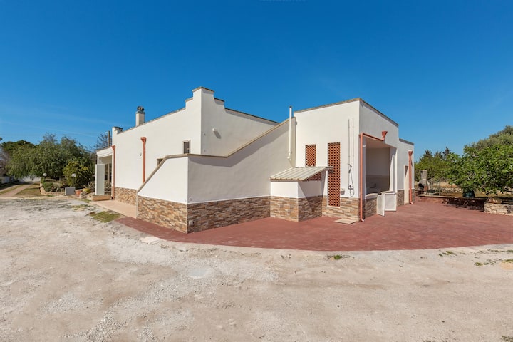 Tenuta Mariais a largevacation villa for rent in Porto Cesareo, in a residential area located in the first hinterland. วิลล่ากว้างขวางและสว่างสดใสมีพื้นที่กลางแจ้งขนาดใหญ่ที่มีอุปกรณ์ครบครันมีเตียง 10 เตียง