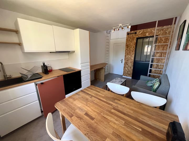 สตูดิโอที่อบอุ่นพร้อมชั้นลอย